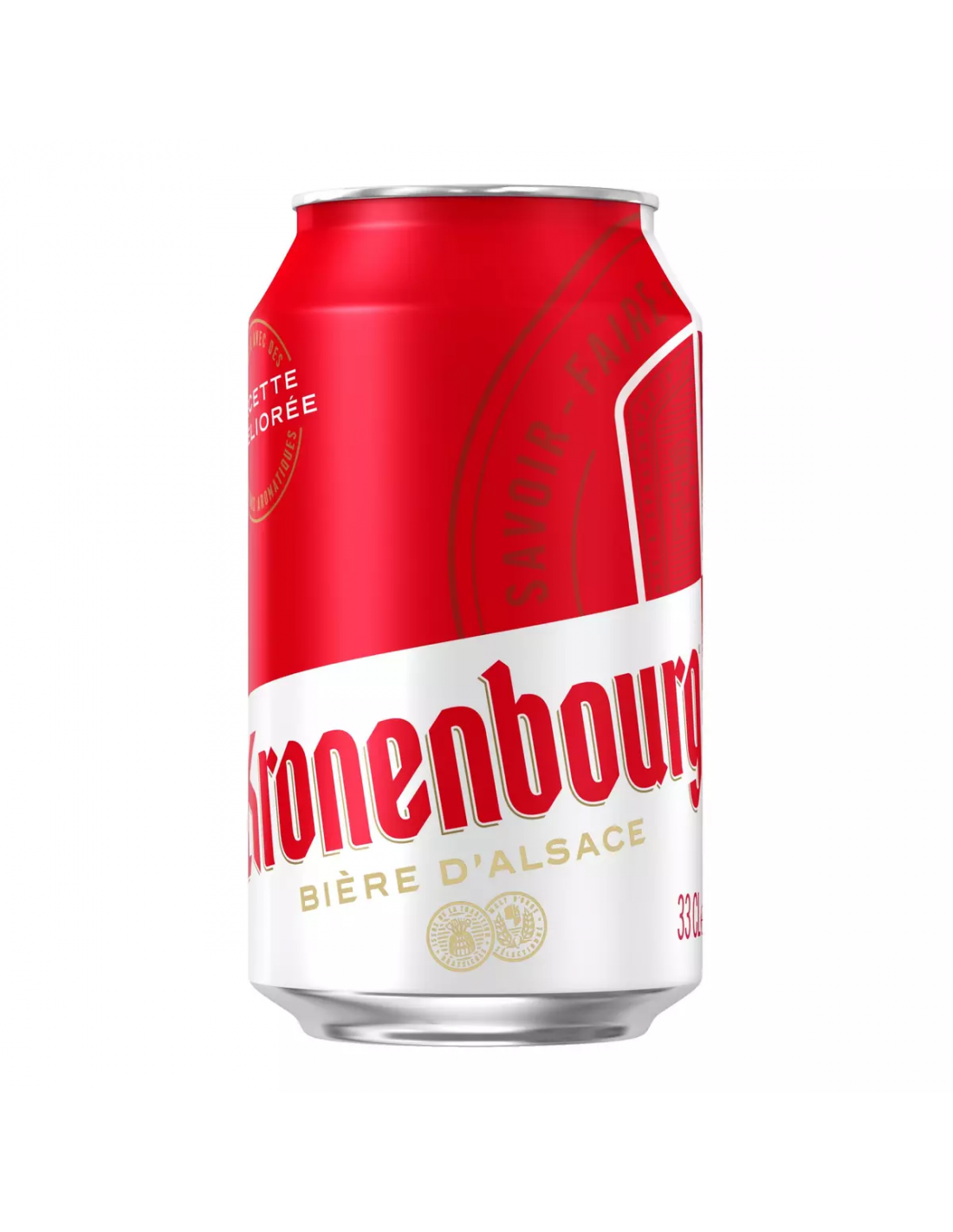 Savoir-faire ancestral (première canette/boîte 33 cl France), Origine France Garantie, ~42 kcal/100 ml. Icone alsacienne depuis 350 ans.